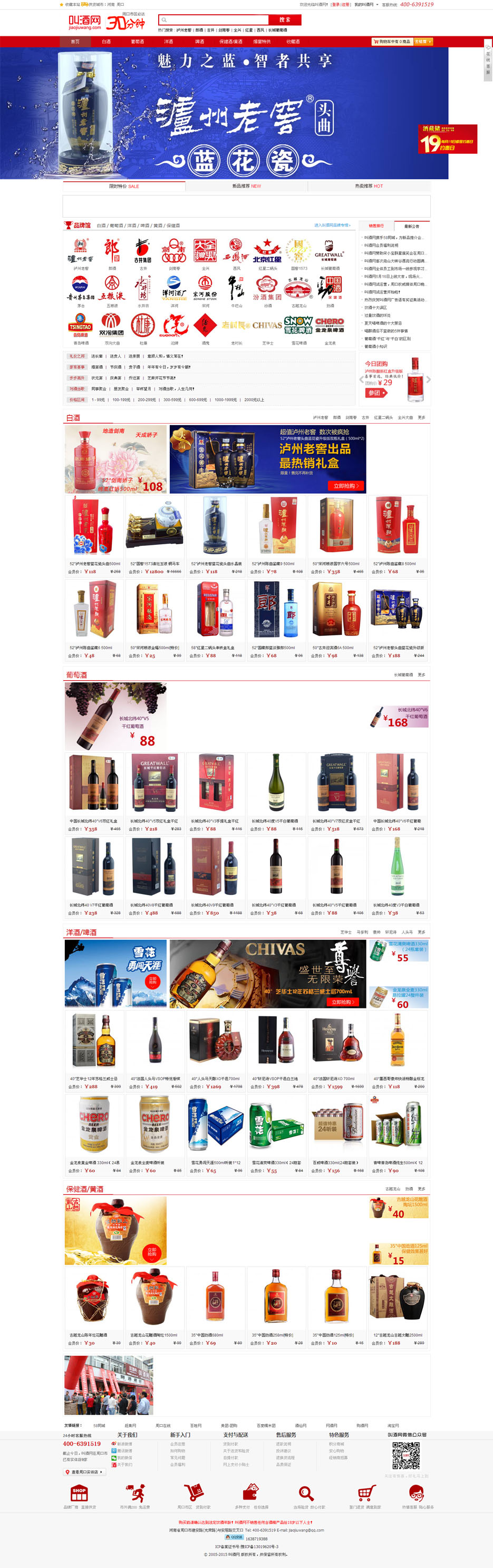 案例介紹:叫酒網(wǎng)隸屬于周口橋西酒藏儲(chǔ)有限公司,以現(xiàn)代電子商務(wù)為媒介,專業(yè)運(yùn)營(yíng)中國(guó)名酒及其系列產(chǎn)品,目前主營(yíng)國(guó)產(chǎn)名優(yōu)白酒、進(jìn)口葡萄酒、高檔洋酒、國(guó)產(chǎn)葡萄酒、啤酒、黃酒、保健酒等。