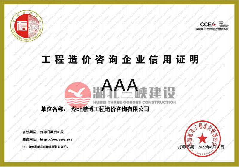 | 工程造價(jià)咨詢企業(yè)信用證明AAA |