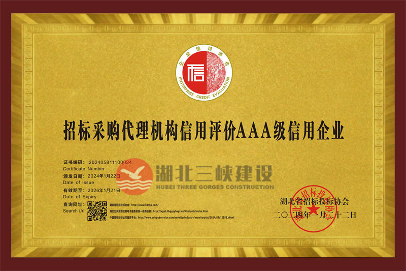 招標(biāo)采購代理機構(gòu)信用評價AAA級信用企業(yè)