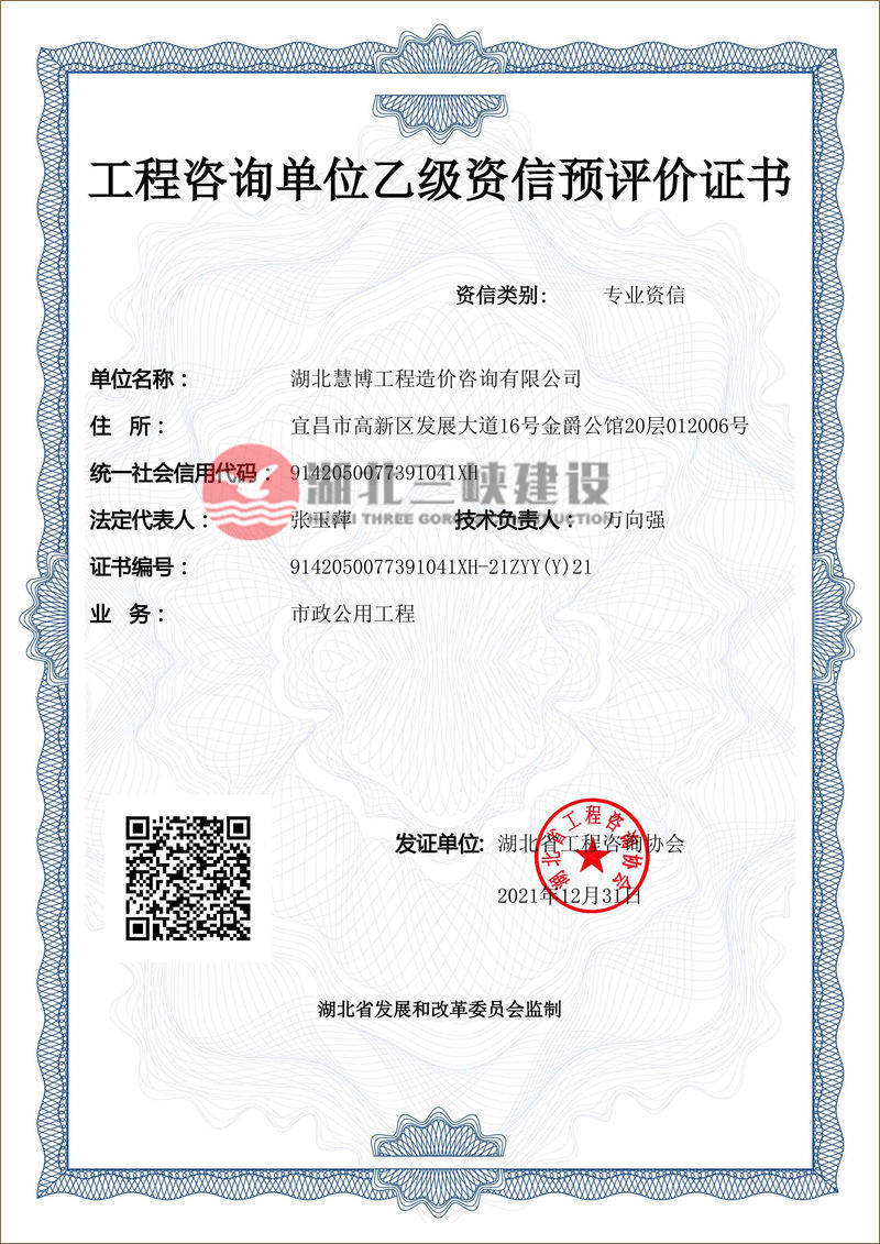 工程咨詢單位乙級資信預(yù)評價證書