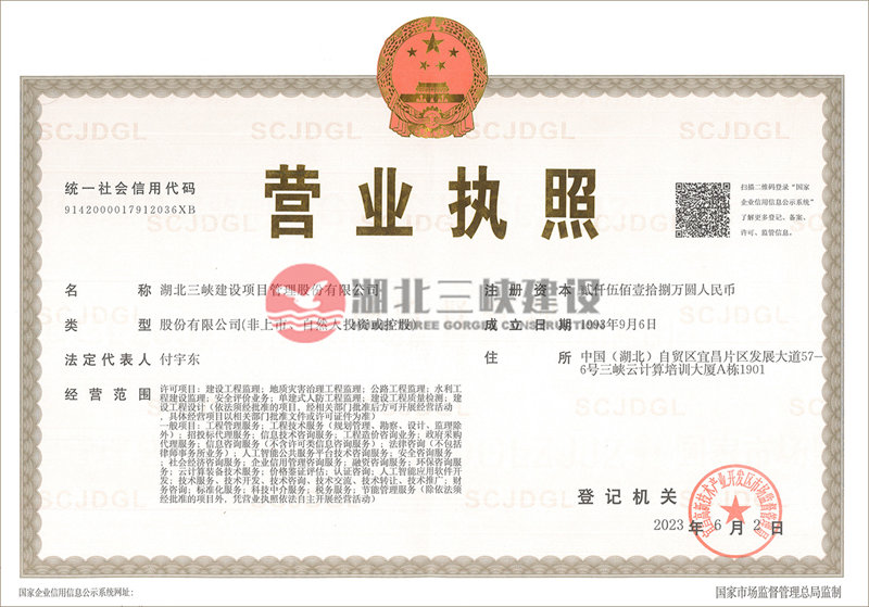 | 湖北三峽建設(shè)項(xiàng)目管理股份有限公司營(yíng)業(yè)執(zhí)照 |