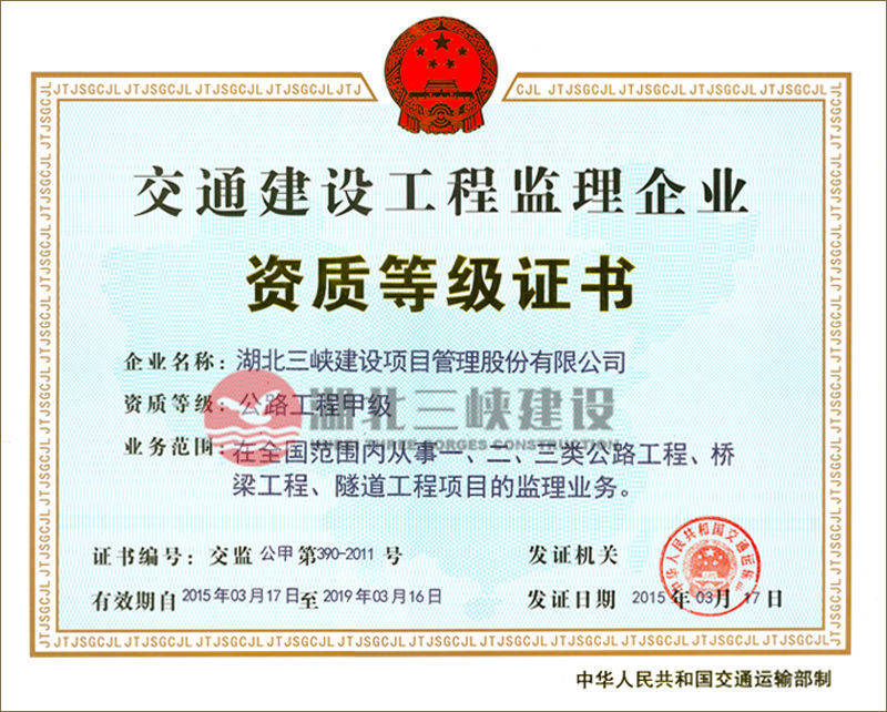 | 交通建設(shè)工程監(jiān)理企業(yè)資質(zhì)等級(jí)證書 |
