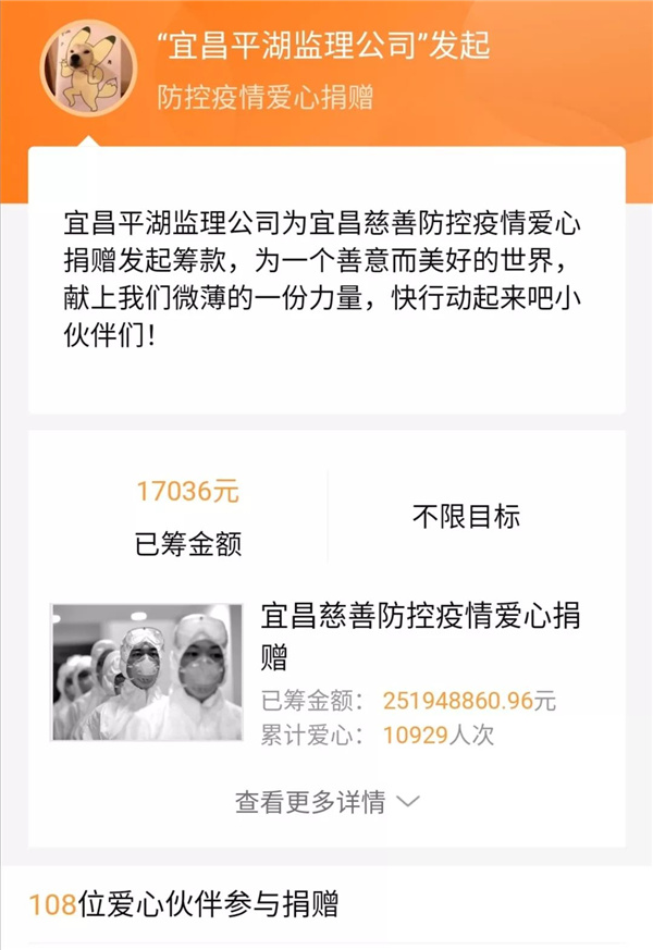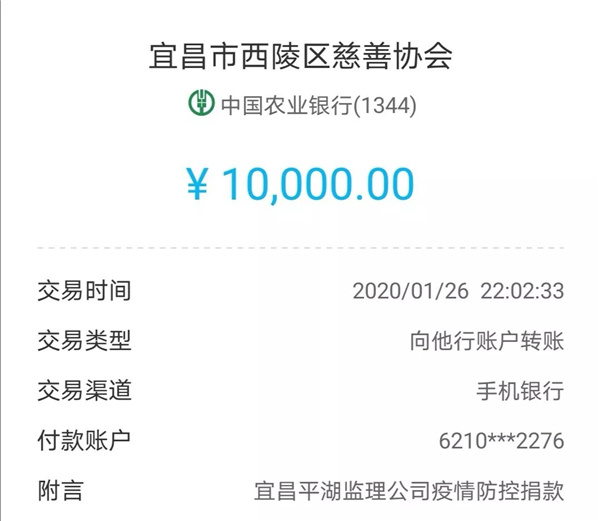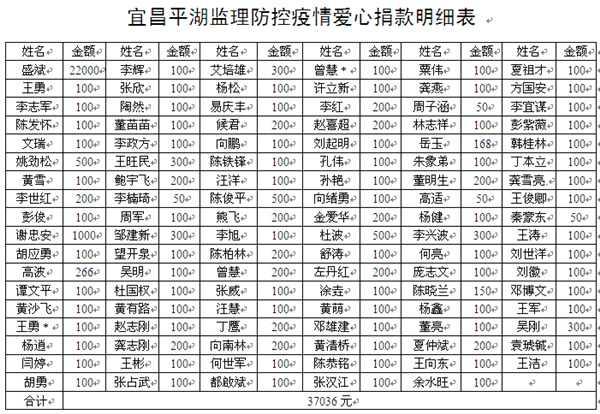 突發(fā)的新型冠狀病毒感染肺炎疫情牽動著黨中央和全國人民的心,全國各地已啟動突發(fā)公共衛(wèi)生事件Ⅰ級響應,各部門、各行業(yè)積極行動,投身到抗擊疫情的第一線。團結一心、眾志成城,堅定不移打贏這場無硝煙的抗疫之戰(zhàn),已全面進入決戰(zhàn)時段。 春風楊柳萬千條,六億神州盡舜堯”,抗擊疫情平湖有責。我們雖不是白衣天使,不能做到義無反顧奔赴前線抗擊疫情,但我們能夠情系前線,獻出我們的一份愛。公司黨支部號召全體員工弘揚守望相助精神,積極行動捐款援助,用善舉彰顯平湖監(jiān)理人的責任擔當,同呼吸、共命運、心連心,為決勝疫情做出積極的貢獻! 由于疫情嚴重,公司取消節(jié)后面簽報到,用愛國捐款的方式,在堅定支持抗擊疫情中報到。以信念備戰(zhàn),用愛心參與,為勝利助力! 2月8日我公司黨支部發(fā)起的愛心捐款,短短3個小時,108位同事踴躍參與,奉獻善款17036元。加上公司總經(jīng)理1月26日捐款10000元、1月28日捐款10000元,我公司參與抗疫共計捐助37036元。愛心還將持續(xù)。