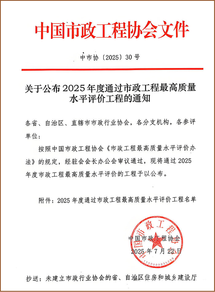 熱烈祝賀我公司監(jiān)理的三峽快速路互通立交-花溪路節(jié)點互通工程順利通過2025年度全國市政工程最高質(zhì)量水平評價!該獎項由中國市政工程協(xié)會組織評選,代表我國市政工程行業(yè)質(zhì)量管理的最高水準,與建筑領(lǐng)域"魯班獎"齊名,是對項目卓越品質(zhì)的權(quán)威認可。