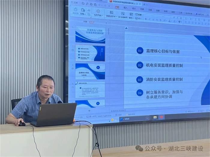 本次會(huì)議,管控部鮑宇飛詳細(xì)通報(bào)了各項(xiàng)目考核結(jié)果,通過數(shù)據(jù)對(duì)比和案例分析,既指出了當(dāng)前存在的典型問題,也對(duì)項(xiàng)目部下步重點(diǎn)提出了管理建議。項(xiàng)目部總監(jiān)熊飛分享《監(jiān)理安全責(zé)任案例分析》,系統(tǒng)講解了新舊《建筑法》條款對(duì)比,監(jiān)理需落實(shí)“方案先行”“旁站監(jiān)督”“隱患閉壞”等規(guī)范要求。項(xiàng)目總監(jiān)張輝分享《高速作業(yè)升降工作平臺(tái)安全管控與實(shí)操要點(diǎn)》,安全風(fēng)險(xiǎn)如影隨形,隱患潛藏細(xì)微之中,時(shí)刻繃緊安全之弦,細(xì)心守護(hù)安全底線。項(xiàng)目機(jī)電安裝專家鄒建新圍繞《房建機(jī)電安裝監(jiān)理質(zhì)量控制》主題展開分享,內(nèi)容聚焦房建機(jī)電與消防安裝兩大板塊的監(jiān)理質(zhì)量控制要點(diǎn)。結(jié)合其多年現(xiàn)場監(jiān)理實(shí)踐經(jīng)驗(yàn),以保利·山海大觀、沃東應(yīng)急救援項(xiàng)目等實(shí)際案例為切入點(diǎn),通過闡述全流程監(jiān)督管理的具體措施與執(zhí)行標(biāo)準(zhǔn),監(jiān)理確保機(jī)電及消防系統(tǒng)最終達(dá)到設(shè)計(jì)標(biāo)準(zhǔn),實(shí)現(xiàn)安全可靠運(yùn)行。